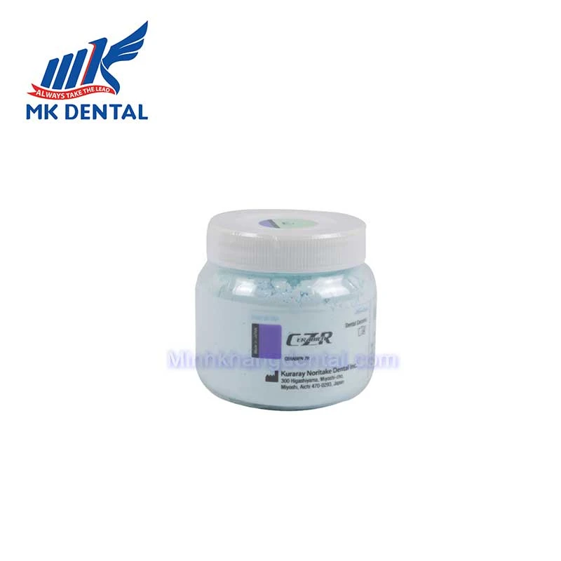 - Bột sứ có nắp lọ màu tím, kí hiệu CZR là sứ không kim loại dùng để đắp lên phôi zirconia.